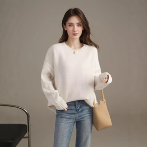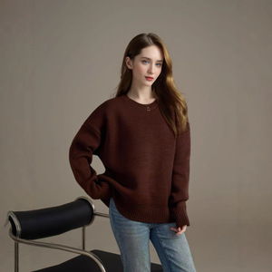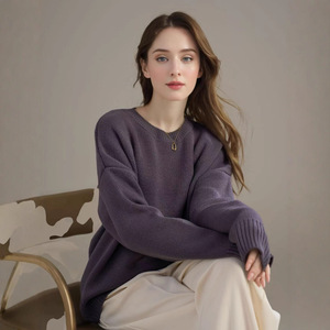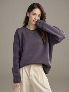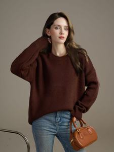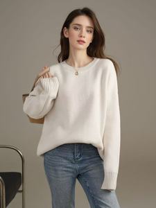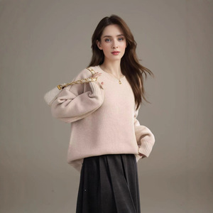 跨境欧美风针织衫2025秋冬新款圆领套头宽松纯色时尚百搭毛衣女潮