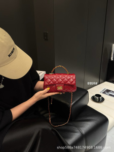 时尚真皮小香风菱格链条包女高级感复古小众斜挎包精致手拎包小包