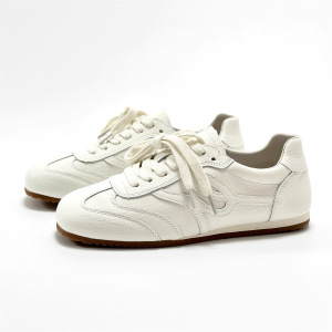 韩版真皮平底德训鞋女2025新款百搭软底阿甘鞋轻便显脚小时尚单鞋