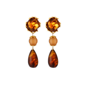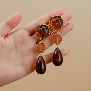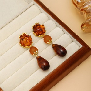 银针美拉德咖色琥珀几何水滴耳钉欧美潮流气质耳环复古高级感耳饰