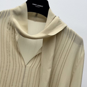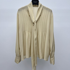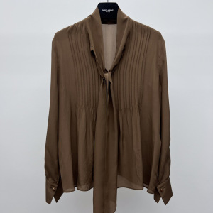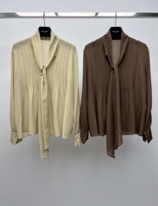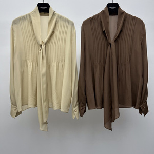 2025早秋新款简约时尚百搭立领飘带长袖设计真丝纯色衬衣上衣批发