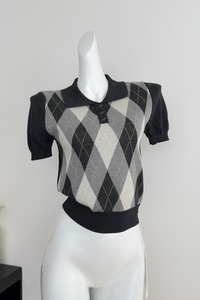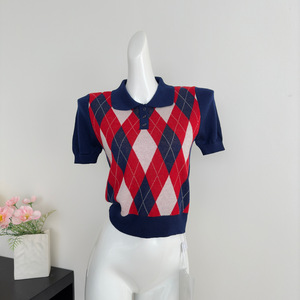 亲肤羊毛经典菱格纹毛衣T恤POLO领短袖针织衫