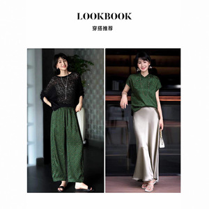 桑蚕丝链纹叠翠非遗香云纱真丝印花上衣/休闲裤套装女25夏季衬衫
