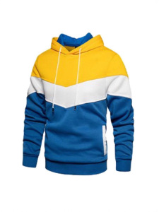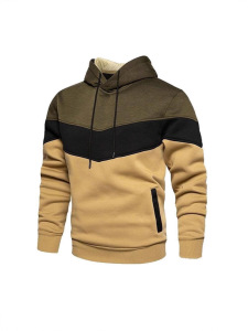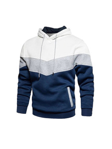 欧美跨境 新款抓绒卫衣拼接连帽衫秋冬休闲运动卫衣休闲外套潮流