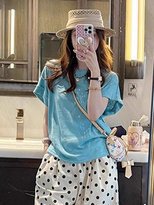 2025新款夏日ootd穿搭独特漂亮小上衣多巴胺洋气减龄蓝色短袖t恤