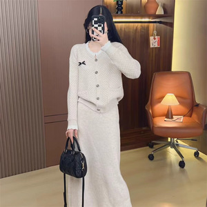 秋冬纯色女装高级感时尚针织衫套装新款圆领保暖毛衣半身裙两件套