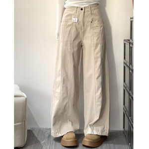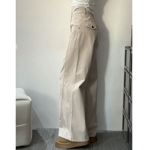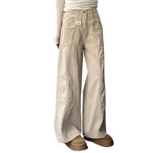 高腰阔腿牛仔裤显瘦拖地长裤女小个子潮米直筒裤复古宽松杏色水洗