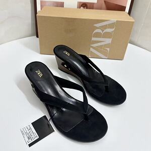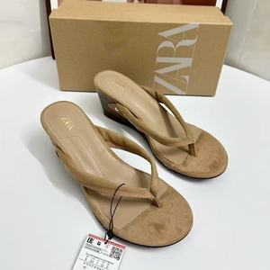 ZR2025 新款夏季法式绝美夹趾坡跟凉拖鞋绒面时尚高跟人字女拖鞋