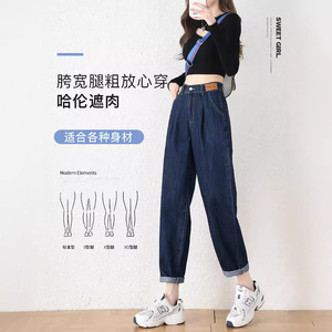哈伦牛仔裤女春秋薄款2025年新款高腰宽松直筒冬萝卜香蕉老爹裤子