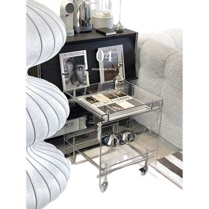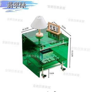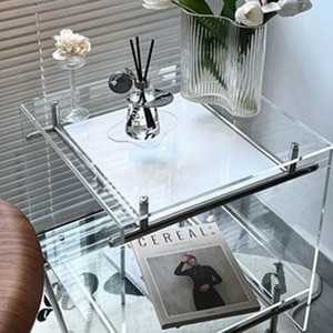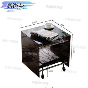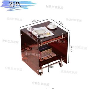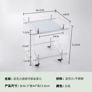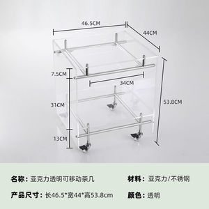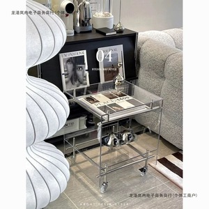 透明亚克力小推车 ins风茶几客厅网红收纳移动床头柜不锈钢置物架