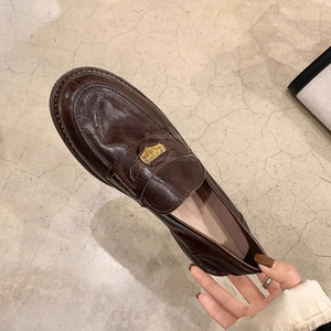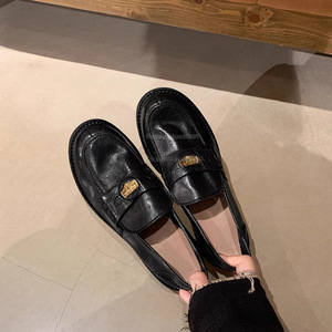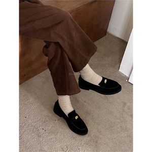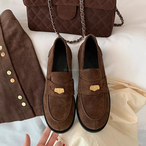 浅口乐福鞋女2025年春秋新款复古绒面单鞋小金币圆头平底皮鞋