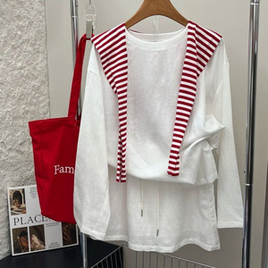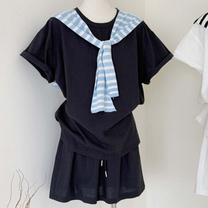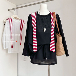 时尚套装女夏季2025新品百搭条纹披肩薄款防晒T恤短裙亚麻两件套