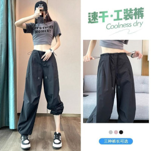 美式速干工装裤女夏低腰抽绳设计感两穿束脚运动裤宽松休闲登山裤