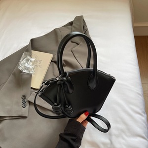 跨境手提贝壳包女2025新款时尚百搭黑色潮流包打结装饰单肩斜挎包