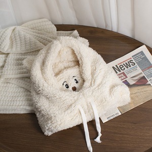 冬季可爱小熊围巾帽子保暖一体帽学生羊羔毛韩版女帽口罩毛绒帽