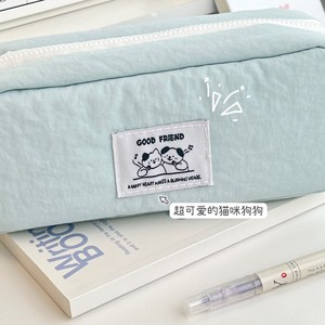 可爱爆款纯色笔袋蓝色简约猫咪ins高颜值大容量学生文具收纳袋