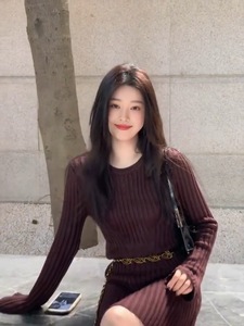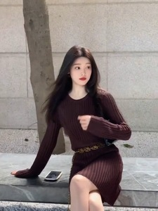 超好看针织长袖连衣裙修身显瘦气质坑条高级感御姐风情万种的裙子