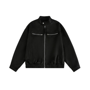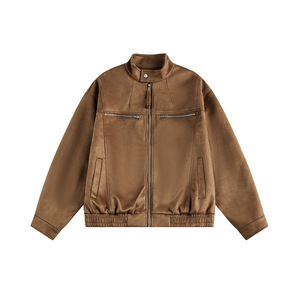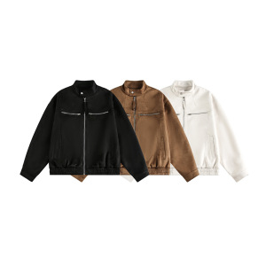 CATTEE美式复古哈灵顿麂皮绒外套男女cleanfit立领机车服情侣夹克