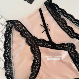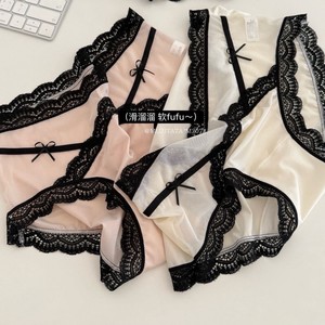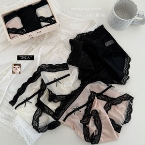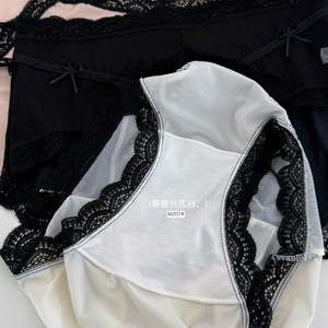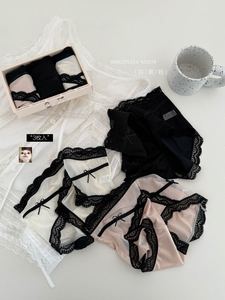 M207#冰缎少女裤高拉弹蕾丝边无痕中高腰缎面冰感女士三角裤盒装