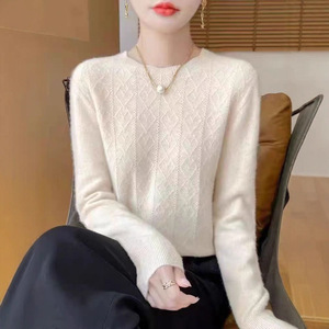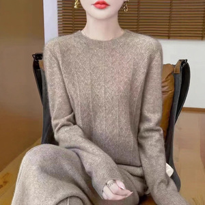羊绒毛衣女25秋冬新款圆领打底衫加厚针织衫内搭宽松纯色上衣保暖
