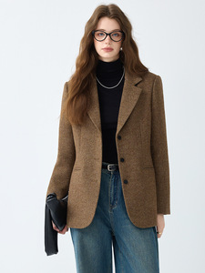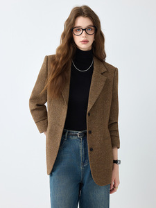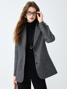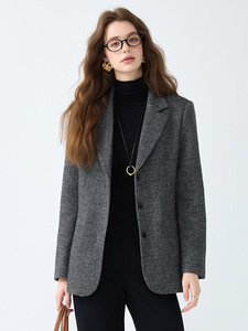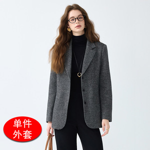 灰色毛呢西装外套女秋冬新款2025高级感气质复古宽松羊毛西服上衣