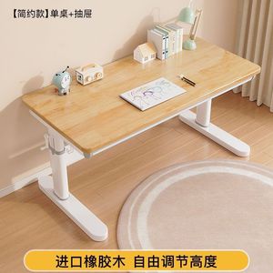 实木橡胶木升降学习桌中小学生书桌抽屉洞洞板书架多功能学习桌