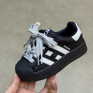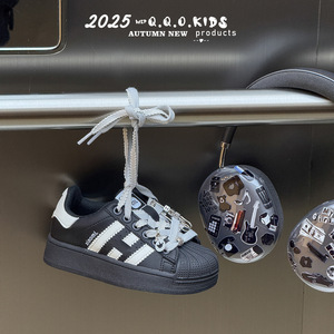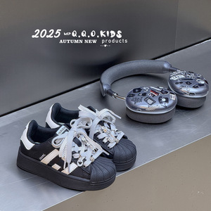 QQO童鞋 2025年秋款儿童经典贝壳头板鞋男女童时尚金属扣件休闲鞋
