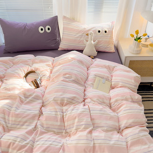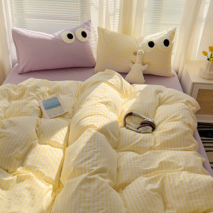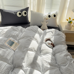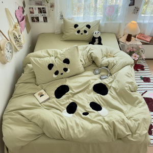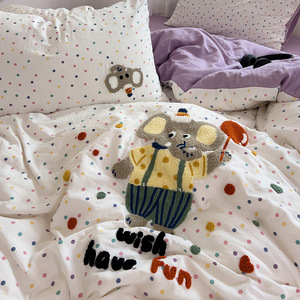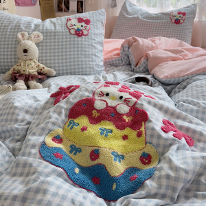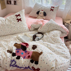 A类ins超柔水洗云朵棉毛巾绣四件套全棉纯色被套大学生宿舍三件套