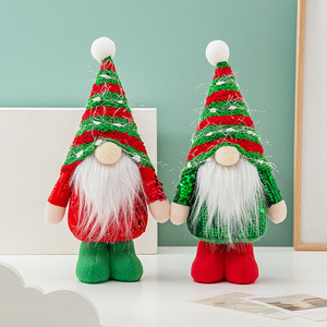 新款圣诞节装饰用品亮片站姿无脸娃娃创意公仔圣诞鲁道夫老人摆件