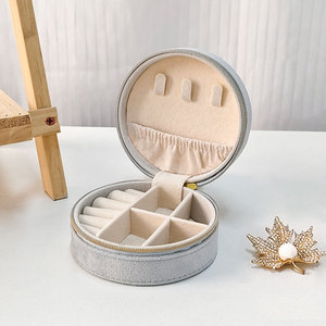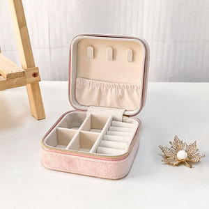 跨境丽丝绒拉链珠宝包装饰品盒 绒布首饰收纳盒耳钉项链戒指盒子