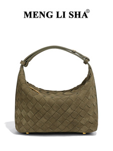 2025秋冬新款磨砂手工编织手拎饭盒包时尚简约女包手提迷你便当包
