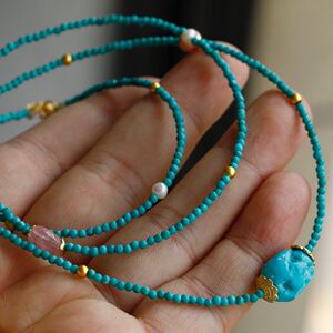 天然原矿松石项链手链两用款搭配天然松石随形碧玺 贝水珍珠 老蜡