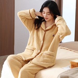 【严选】300g珊瑚绒睡衣女士秋冬季加厚加绒保暖法兰绒家居服套装