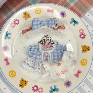 10cm娃衣-蓝格甜心套装(发带+围裙+裙子)