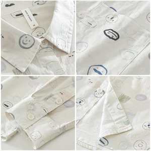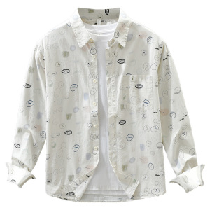 7719卡通印花清新长袖衬衫男士时尚百搭文艺休闲宽松上衣一件代发
