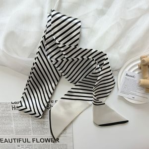 韩系甜美气质条纹丝巾2025新款长条围巾搭配衬衫高级感系脖子配饰