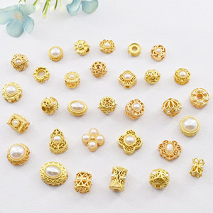 古法金镶嵌珍珠配饰隔珠串珠手工饰品配件散珠diy串珠配饰材料