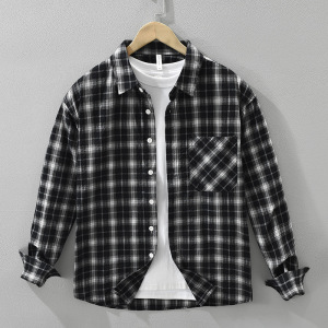 7787日系格子清新长袖衬衫男士时尚百搭文艺休闲宽松上衣一件代发