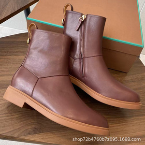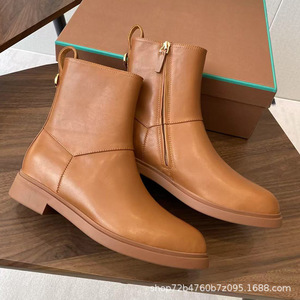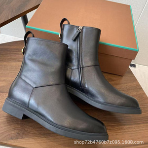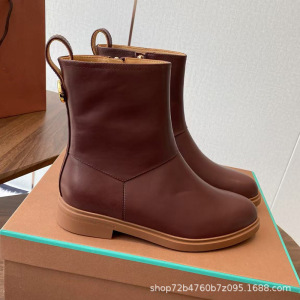 高定25秋冬新款时尚圆头粗跟高跟马丁靴短筒女靴百搭时装靴短靴