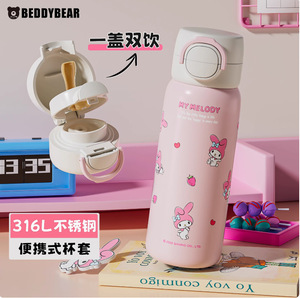 杯具熊海浪双饮保温杯女高颜值可爱便携水杯儿童上学水壶吸管杯子