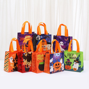 万圣节卡通印花无纺布礼品包装袋袋节日派对礼物手提袋批发