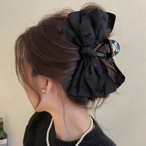 法式新款蝴蝶波点抓夹时尚马尾顶夹发卡百搭后脑勺盘发鲨鱼夹头饰