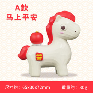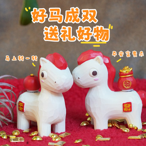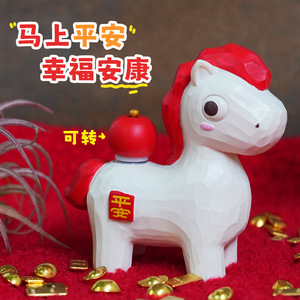 平安转转摆件马年吉祥物办公室桌面求财摆件树脂仿木雕装饰摆件