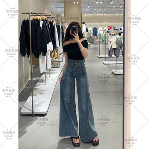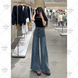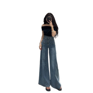 超阔腿牛仔裤女2025年秋季新款高腰双纽扣宽松显瘦百搭拖地长裤