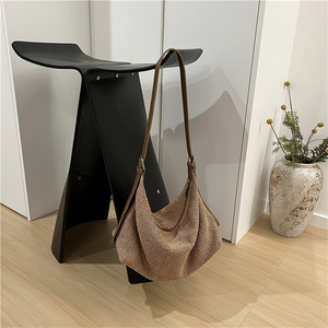 本季 2025新款日韩PP草编休闲手提腋下包单肩斜挎饺子包托特包
