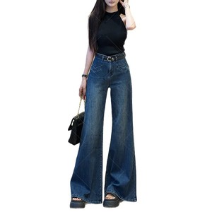 深色高腰不贴腿喇叭牛仔裤女2025年秋季新款遮肉显瘦垂感拖地长裤