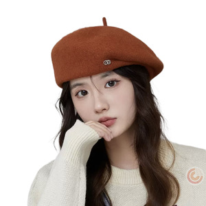 新款韩版秋冬季羊毛纯色时尚贝雷帽女士户外休闲显脸小蘑菇帽子潮