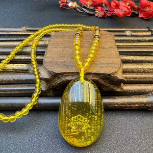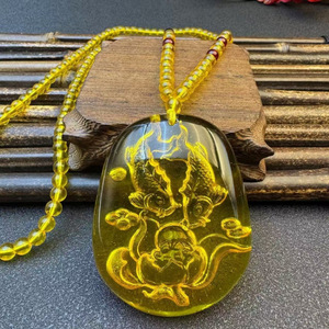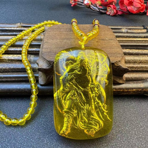 树脂蜜蜡内雕心经千手观音金珀琥珀阴雕吊坠项链厂家批发直播货源