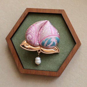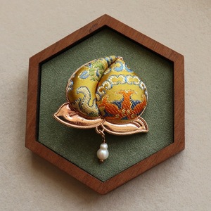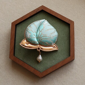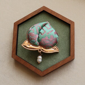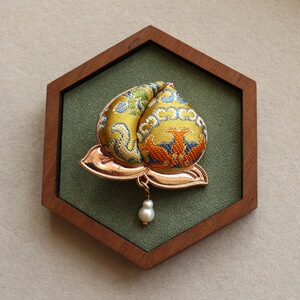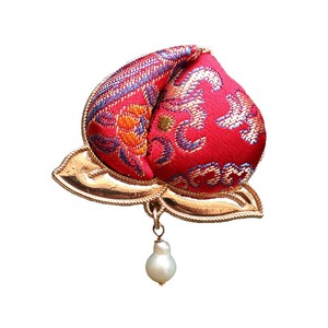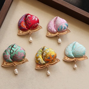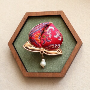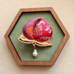 新中式宋锦福桃子珍珠胸针汉服旗袍精致搭配胸饰品长辈送礼好物成