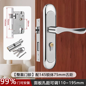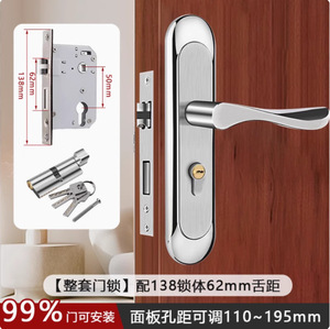 不锈钢可调节卧室门锁家用通用型房间门锁室内木门免改孔锁具